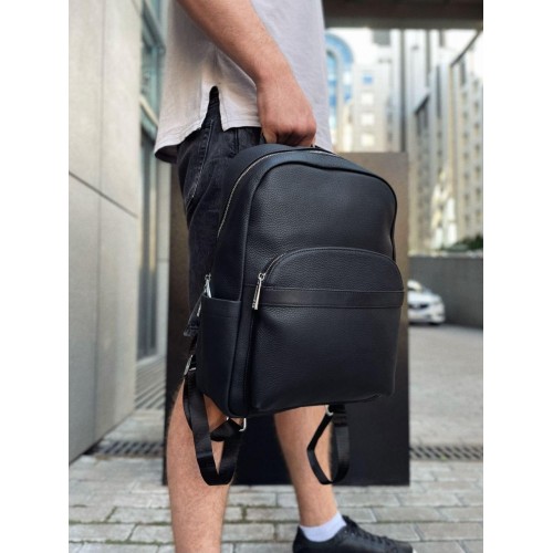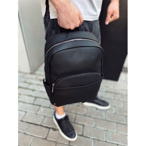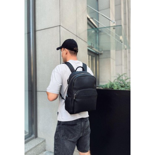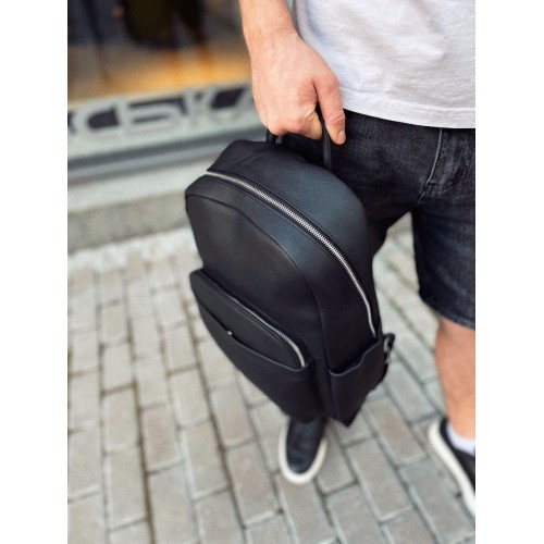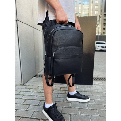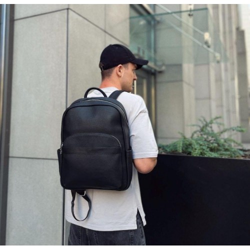 Стильний шкіряний чоловічий рюкзак Tiding Bag N2-191116-3A виготовлений із натуральної шкіри чорного кольору, що має зернисту матову текстуру.