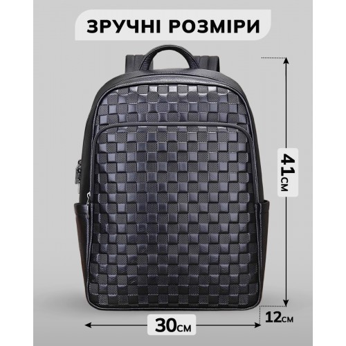 Рюкзак чоловічий шкіряний 30х41х12, міський наплічник для ноутбука та документів Tiding Bag 63989 чорний