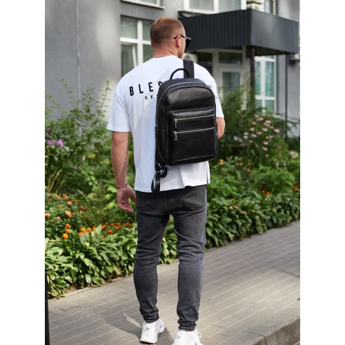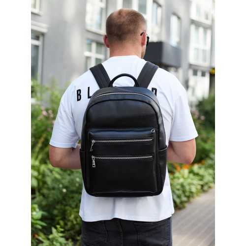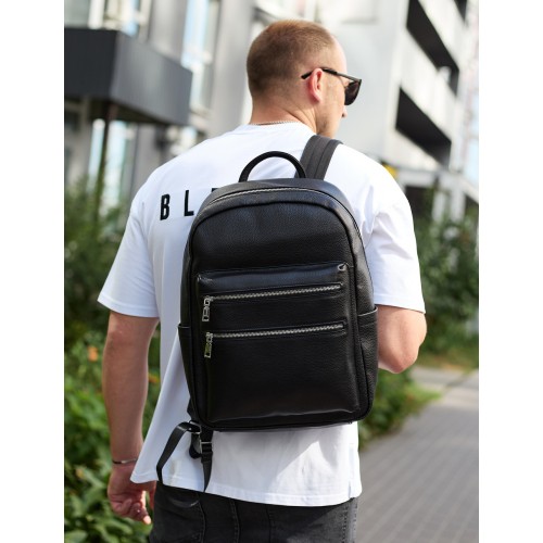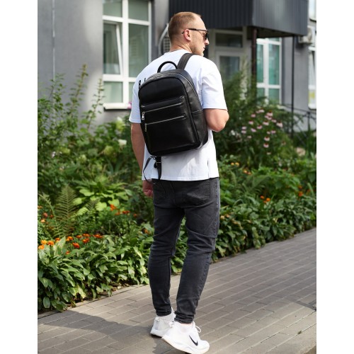 Міський чоловічий рюкзак із натуральної шкіри 41х30х17, наплічна сумка для ноутбука та документів, чорний