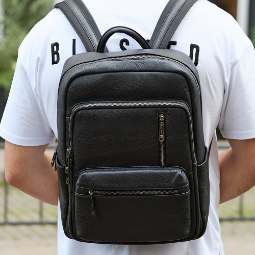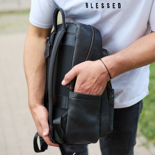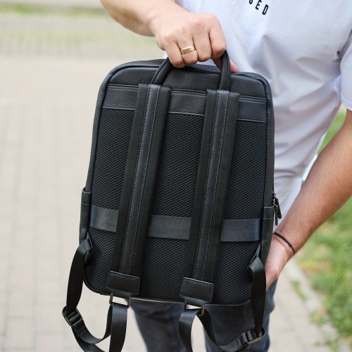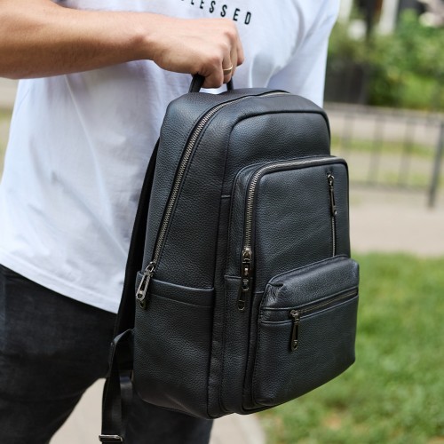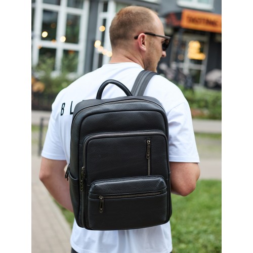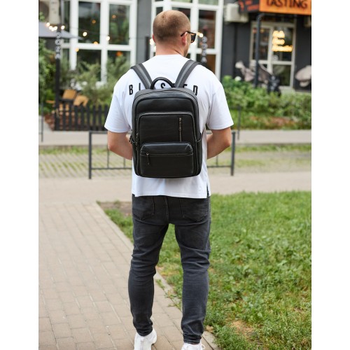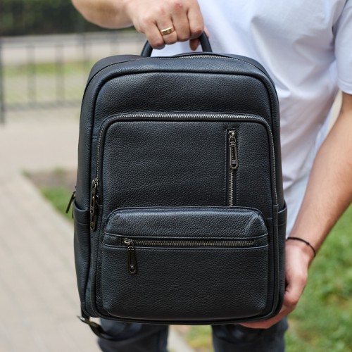 Міський чоловічий рюкзак із натуральної шкіри 40х30х18, наплічник для роботи та подорожей, чорний