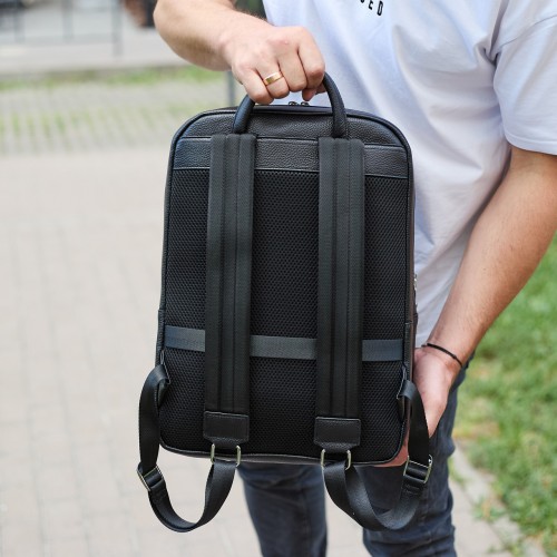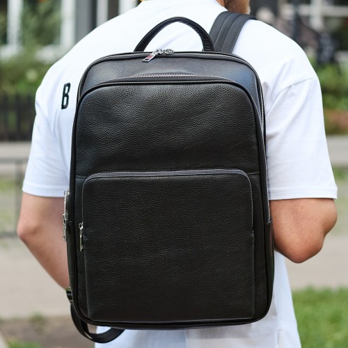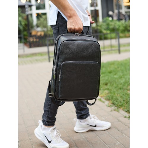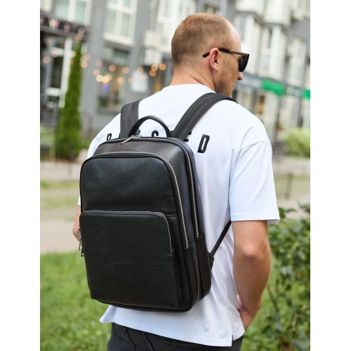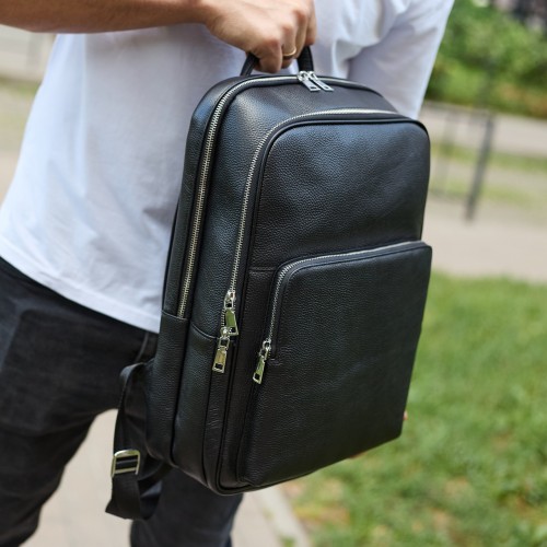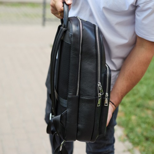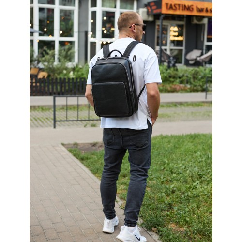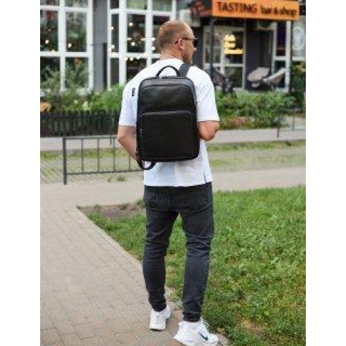 Класичний чоловічий рюкзак зі шкіри 42х30х16, практичний аксесуар для ноутбука та документів, чорний