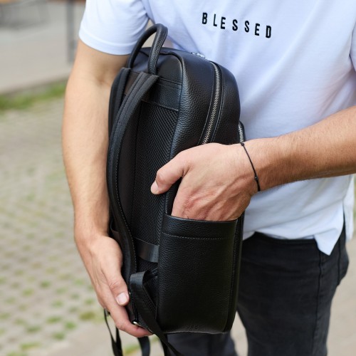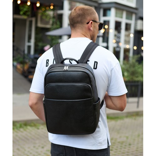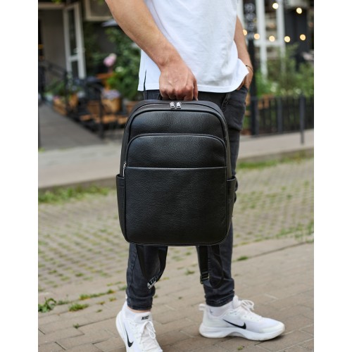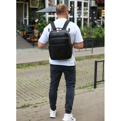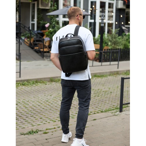 Універсальний чоловічий рюкзак із шкіри 41х31х16, зручний наплічник для ноутбука та документів, чорний