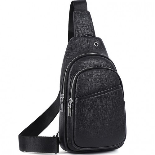 Сумка-слінг чоловіча чорна через плече з натуральної шкіри TIDING BAG A25F-515-1A