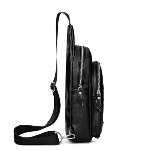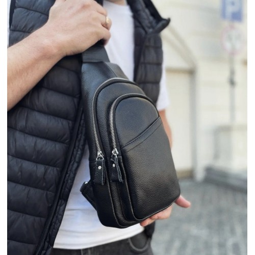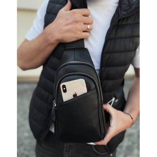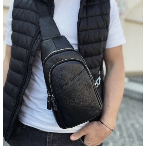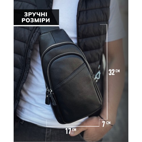 Сумка слінг чоловіча через плече 17х32х8, бананка з натуральної шкіри TIDING BAG A25F-515-1A чорна