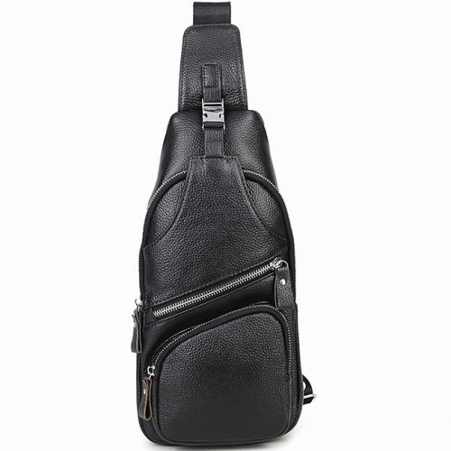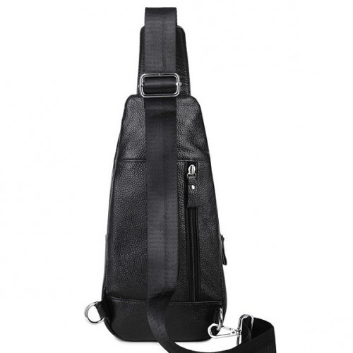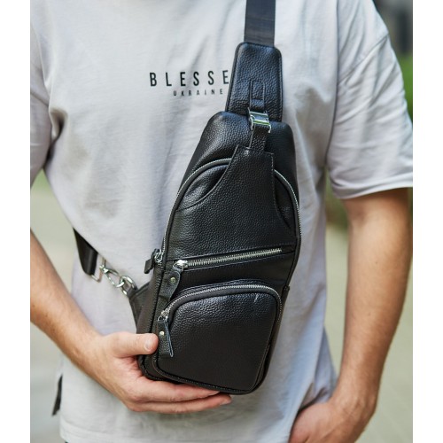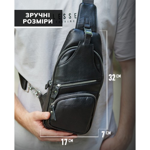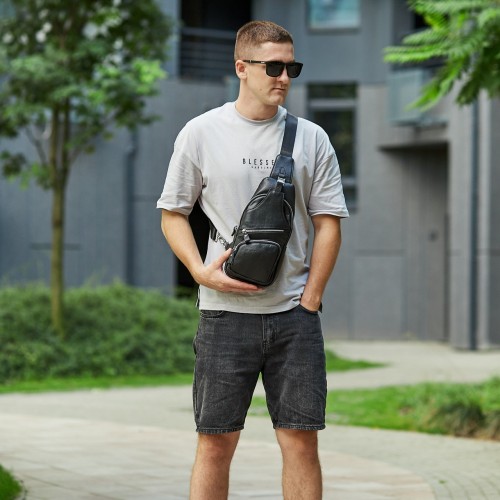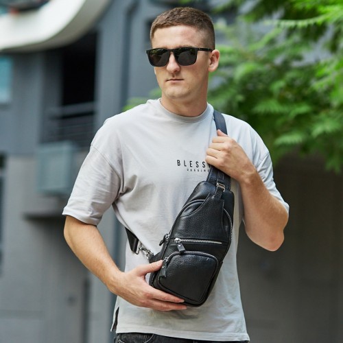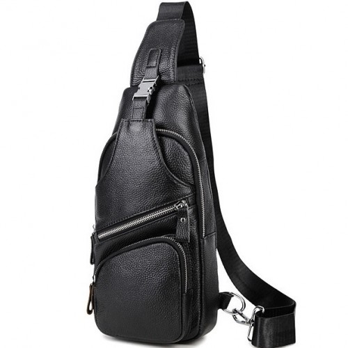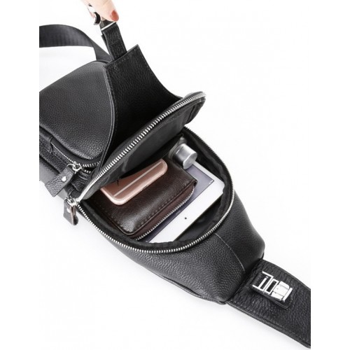 Сумка-слінг чоловіча на плече 17х32х7, нагрудний шкіряний рюкзак для міста TIDING BAG MK16094 чорний