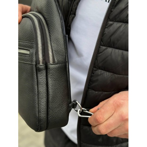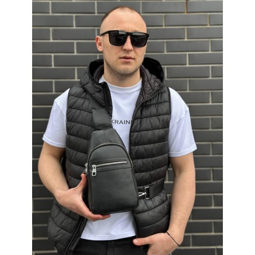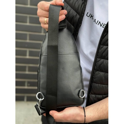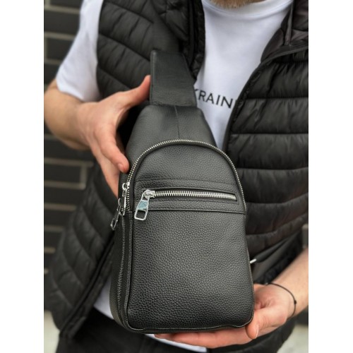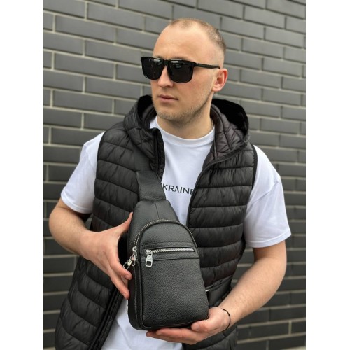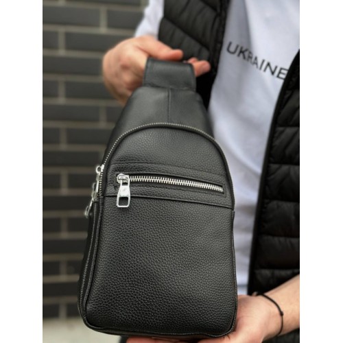 Шкіряна сумка-слінг, рюкзак через плече чорна TIDING BAG 3280