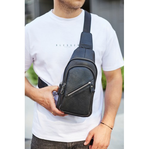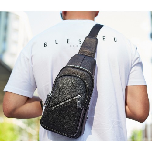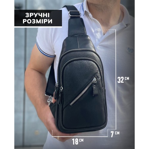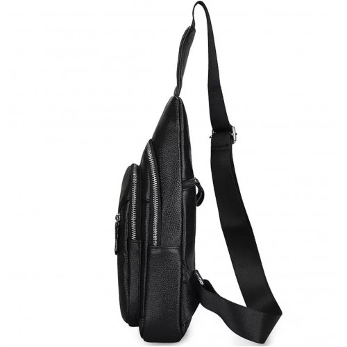 Чоловічий слінг через плече 18х32х7, шкіряна бананка нагрудна, сумка рюкзак Tiding Bag 33737 чорна