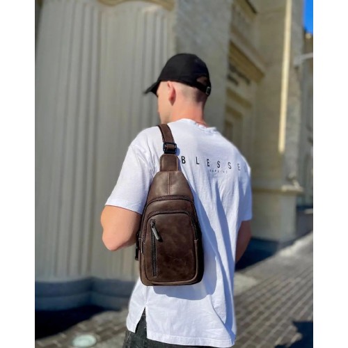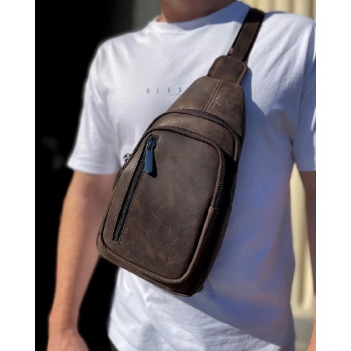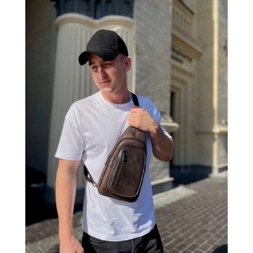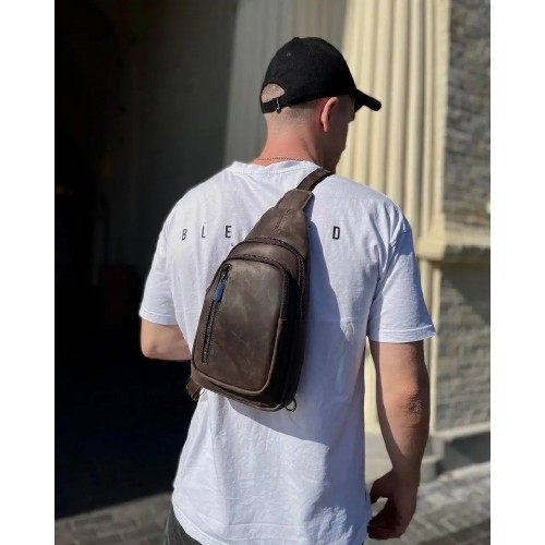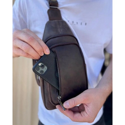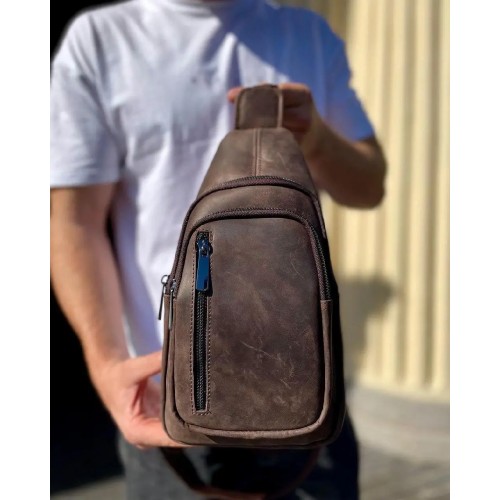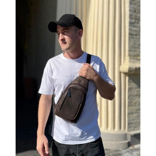 Чоловічий слінг зі шкіри крейзі хорс в коричневому кольорі 6349