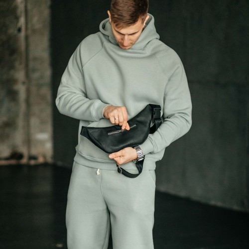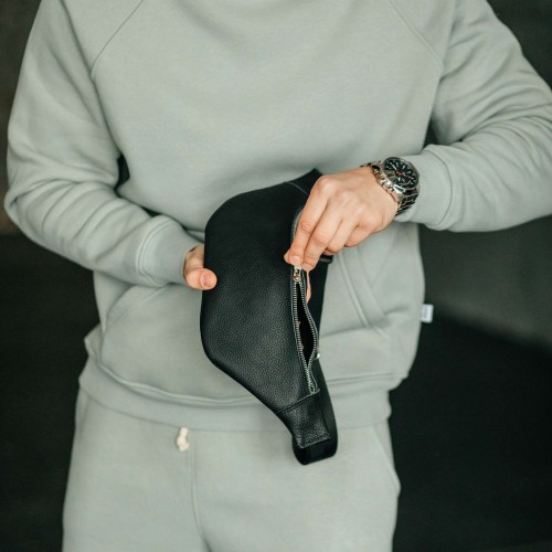 Чоловіча шкіряна чорна сумка на пояс бананка Brooklyn