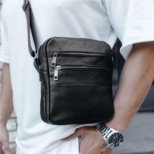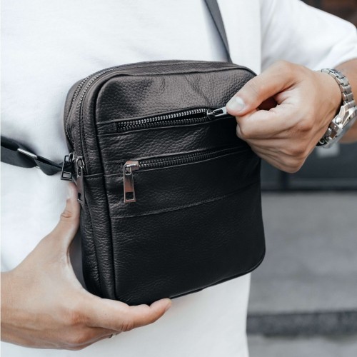 Чоловіча шкіряна чорна сумка через плече Detroit