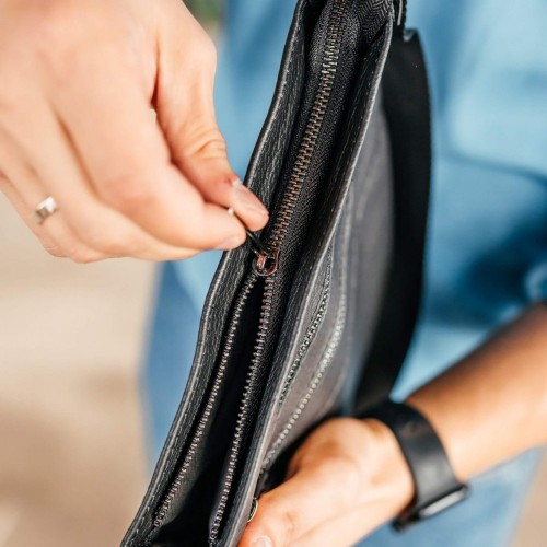 Ця чорна сумка замінить вам клатч чи барсетку. З цією шкіряною сумкою-месенджером усі ваші найближчі речі завжди будуть поряд.