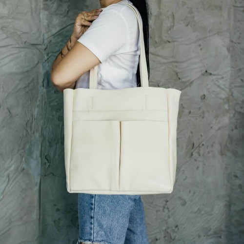 Ця модель бежевої сумки Юта ідеально підходить для будь-яких ситуацій - від роботи і офісу до подорожей. Завдяки своїй великій вмісткості, вона легко вмістить ваш гаманець, ключі, телефон, косметику, окуляри та навіть контейнер з обідом. Ви не тільки будете мати все необхідне під рукою, але й будете виглядати стильно та елегантно завжди.