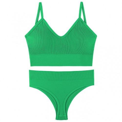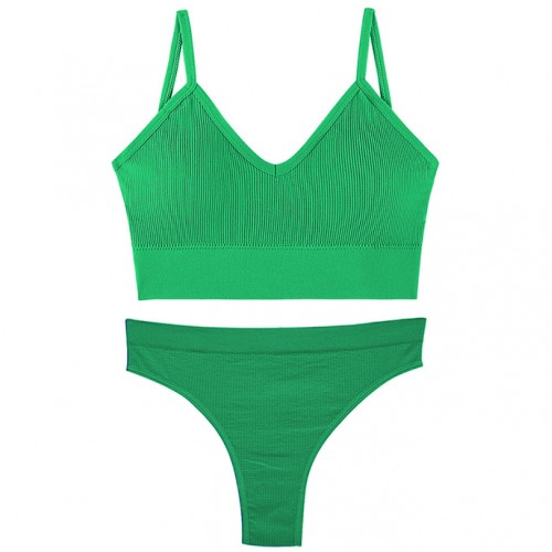 Бесшовный комплект женского белья в рубчик трусы и топ 1608# Лесной зеленый M 70/75 ABC