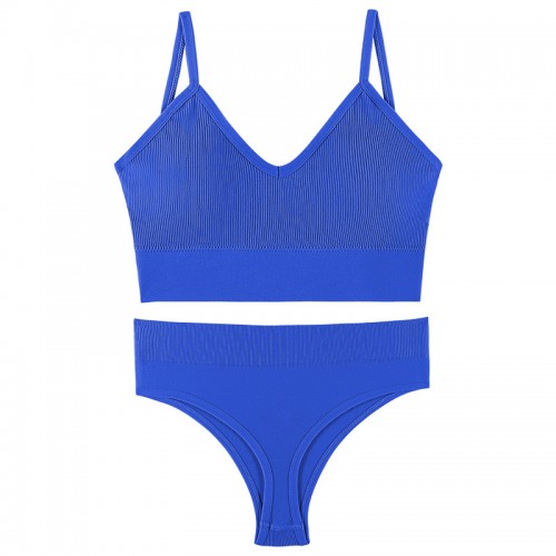 Бесшовный комплект женского белья в рубчик трусы и топ 1608# Синий XL 85 ABC