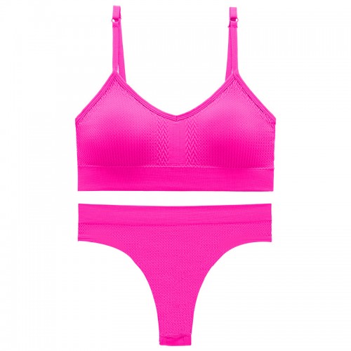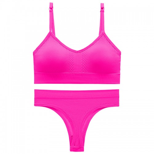 Бесшовный комплект женского белья в текстуре косичка трусы и топ 6608# Розовый электрик L