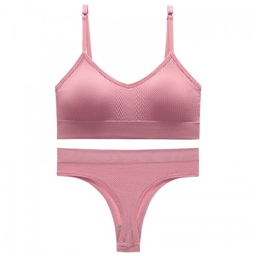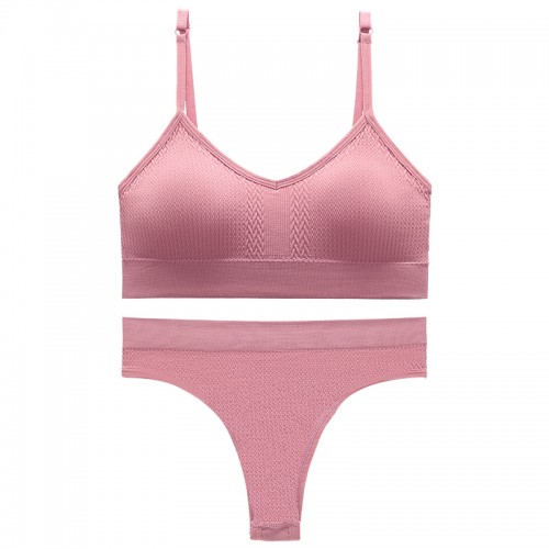 Бесшовный комплект женского белья в текстуре косичка трусы и топ 6608# Розовый S