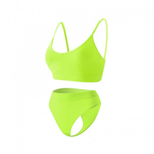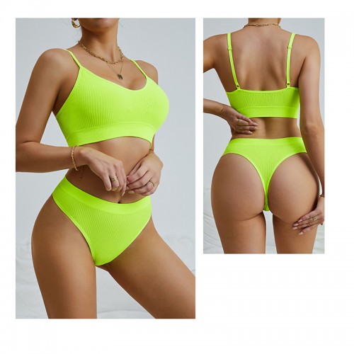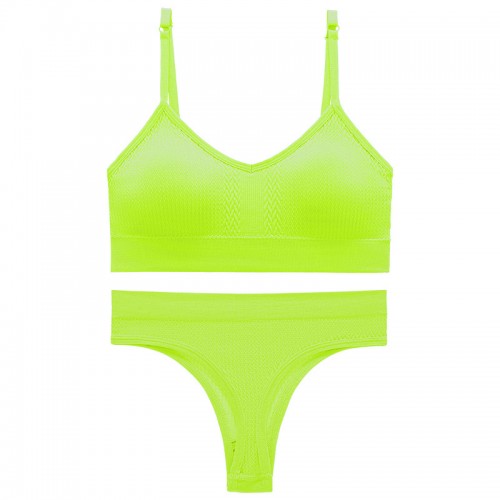 Бесшовный комплект женского белья в текстуре косичка трусы и топ 6608# Яркий Лайм L