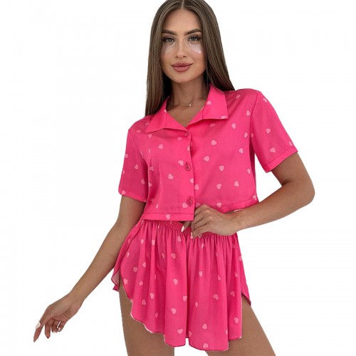Женский комплект для дома и сна 2S5247B рубашка и шорты женская пижама розовая с сердечками M