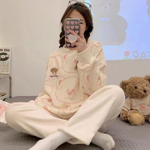 Комплект женской пижамы 301 Bear Pink рубашка с длинным рукавом и штанами теплая L