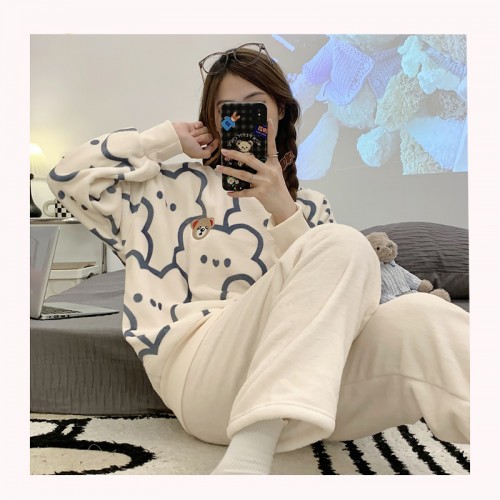 Комплект женской пижамы 302 Bear Blue рубашка с длинным рукавом и штанами фланелевая теплая L