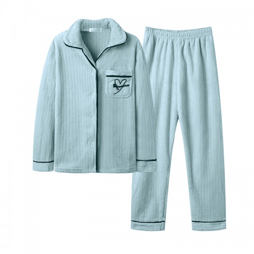 Комплект женской пижамы CK-507 Light Green рубашка с длинным рукавом и штанами теплая XL