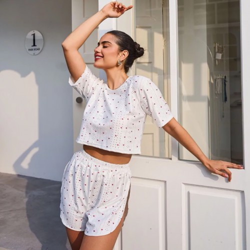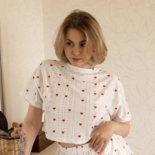Женский комплект для дома и сна SM24107AYH футболка и шорты женская пижама белая с красными сердечками S