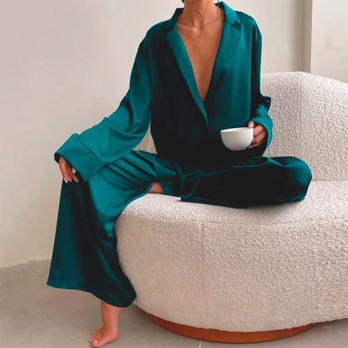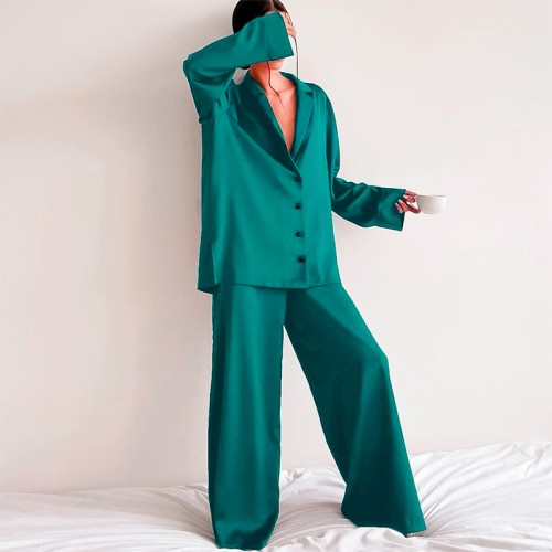 Женский шелковый комплект для дома и сна 2SYCK1315 рукашка и штаны женская пижама атласная Изумрудный L