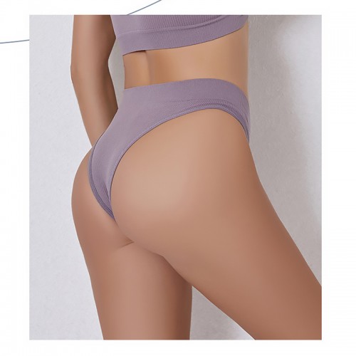 Женские бесшовные трусики бразилианы в рубчик A02# Лиловый XL