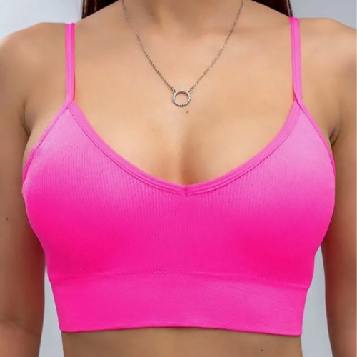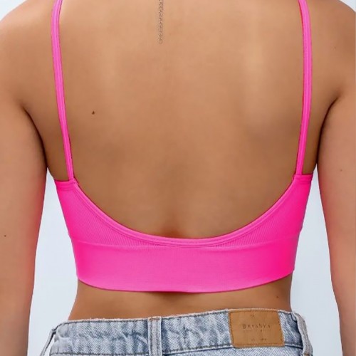 Топ женский в рубчик 08WX# с нерегулируемыми брителями съемные чашечки Розовый электрик XL 85 ABC