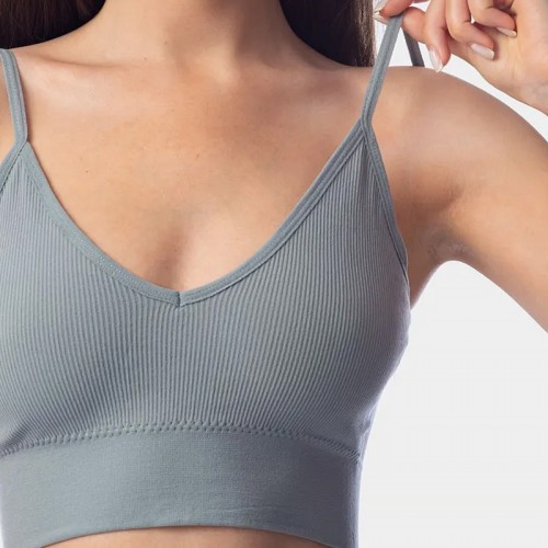 Топ женский в рубчик 08WX# с нерегулируемыми брителями съемные чашечки Серый L 80 ABC