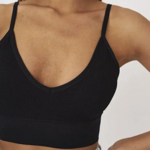 Топ женский в рубчик 08WX# с нерегулируемыми брителями съемные чашечки Черный M 70/75 ABC