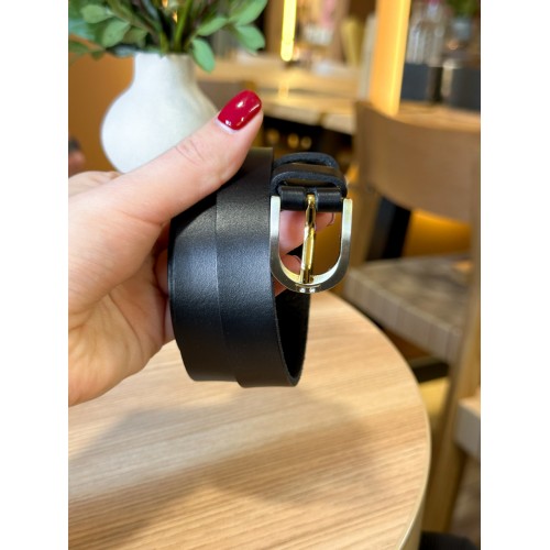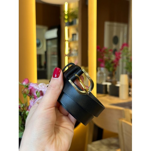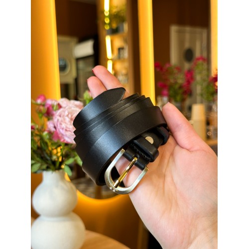 Шкіряний жіночий ремінь в чорному кольорі 6094