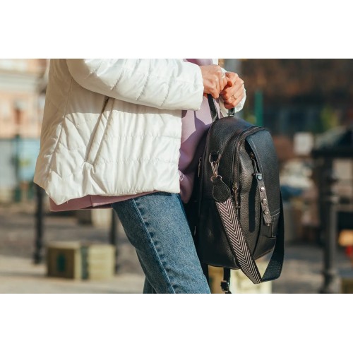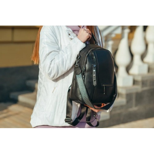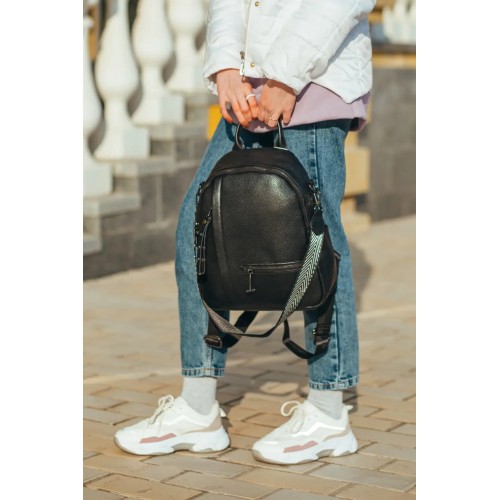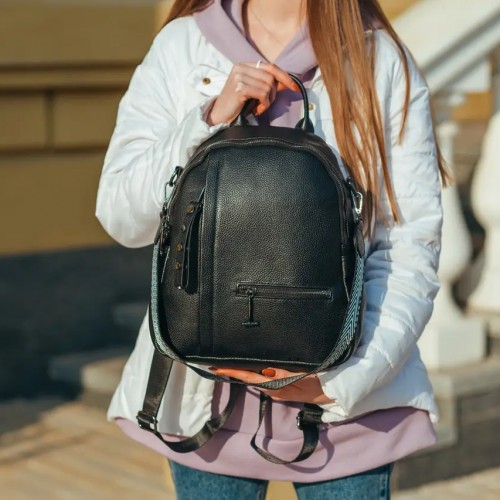 Жіночий шкіряний рюкзак міський 23х32х13, сумка для міста, подорожей та відпочинку, чорна
