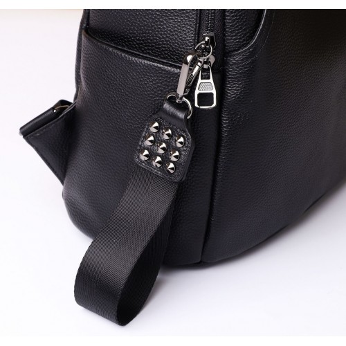 Стильний аксесуар для дівчат і жінок, необхідний для повсякденного життя, яка стає динамічнішою, активнішою та швидкіснішою. У такий практичний і функціональний рюкзак дасть змогу розмістити багато різноманітних речей. Виготовлений із натуральної шкіри, у практичному чорному кольорі, який буде доречний у будь-якій колірній гамі гардероба. Вміщує документи формату А5.