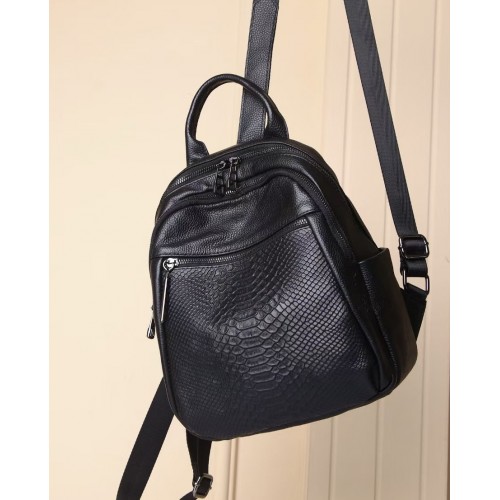 Рюкзак жіночий шкіряний з тисненням під рептилію 23х30х13, сумка наплічна для міста, чорна