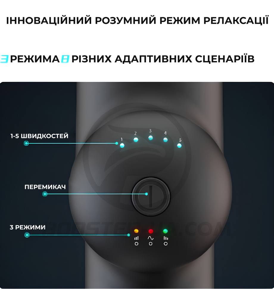 - Захист від вологи та ударів: Робить масажер надійним та довговічним, забезпечуючи його стабільну роботу в різних умовах.