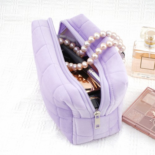 Застежка-молния обеспечивает надежное закрытие, защищая содержимое косметички от случайных потерь или загрязнений.