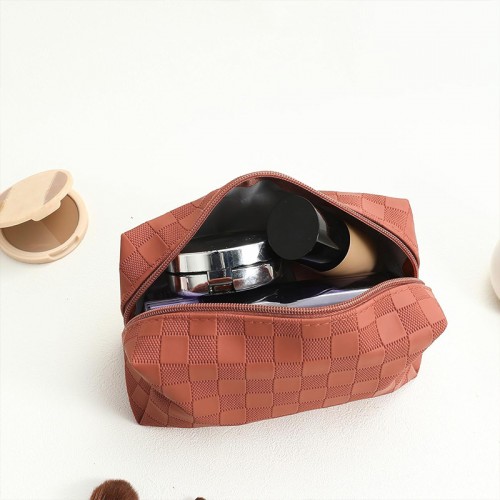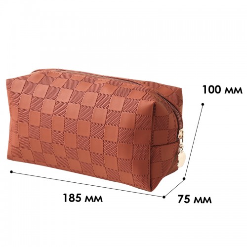 Застежка-молния обеспечивает надежное закрытие, защищая содержимое косметички от случайных потерь или загрязнений.