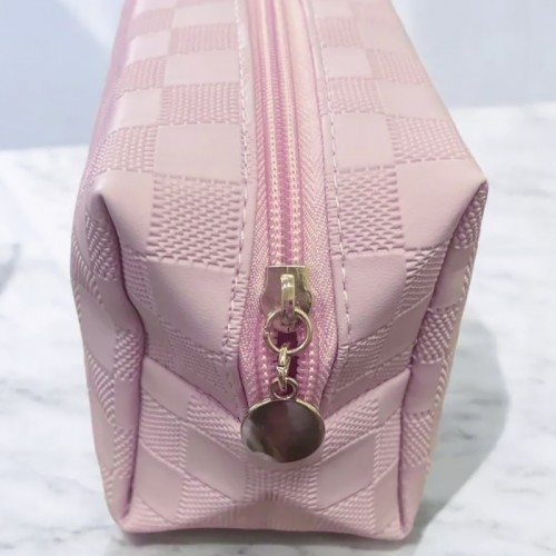 Застежка-молния обеспечивает надежное закрытие, защищая содержимое косметички от случайных потерь или загрязнений.