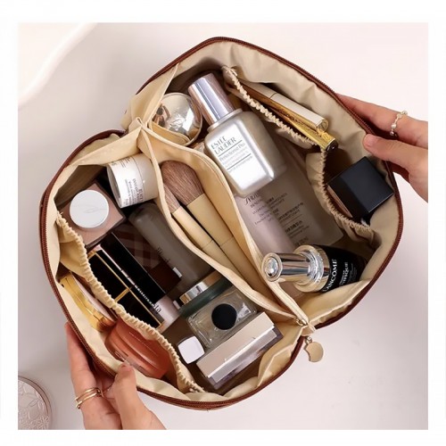 Два отдельных отделения позволяют удобно разместить разные косметические средства и аксессуары, разделяя их по назначению или частоте использования. Большой отдел с разделами и средний карман на молнии обеспечивают дополнительное пространство для организации ваших вещей.