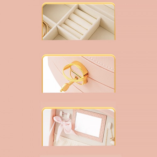 Шкатулка Casegrace SP-01279 для украшений и ювелирных изделий двохуровневая с зеркалом и ручкой 20*15*10 см Pink