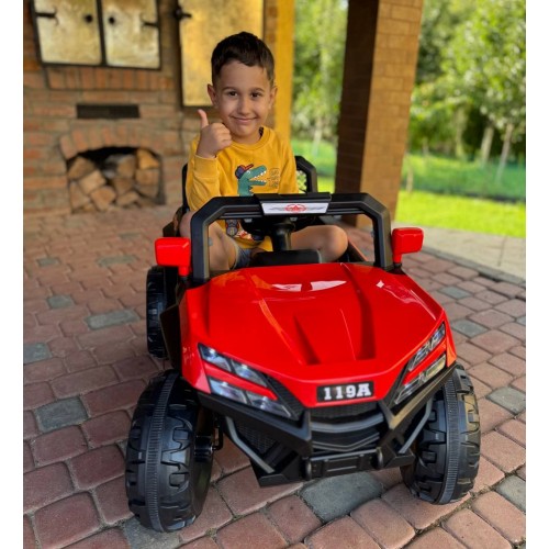 Дитячий електромобіль ДЖИП БАГГІ двомісний (4 двигуни, пульт, світло, музика), Червоний