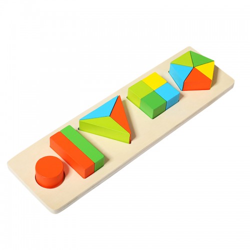 Эта игрушка изготовлена из высокого качества дерева и создана с целью способствовать всестороннему развитию вашего ребенка. Она состоит из дощечки и набора фигур, которые ребенок может вкладывать в специальные вырезы, объединяя сложные элементы головоломки в простые, знакомые фигуры.