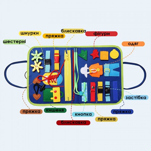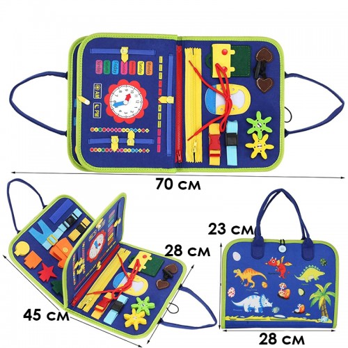 Детская развивающая сумочка 5462 бизиборд монтессори-игрушка для малышей моторику и сенсорику Blue