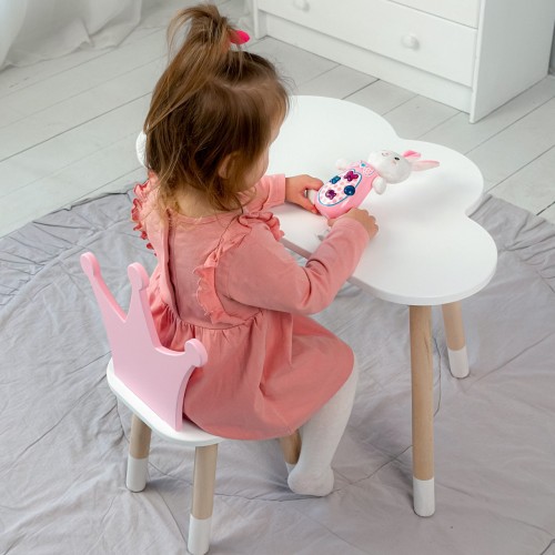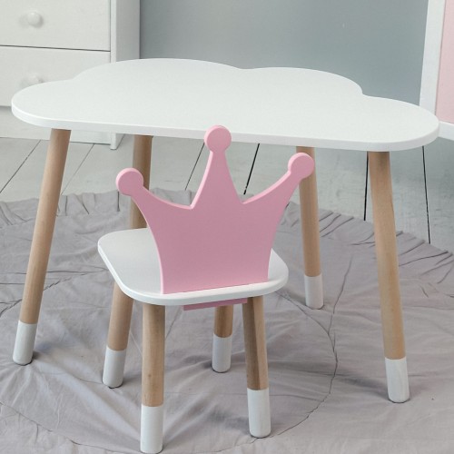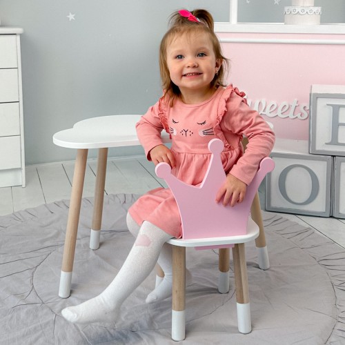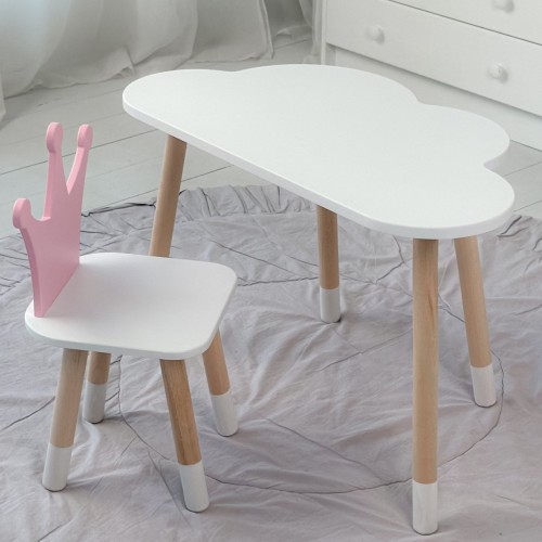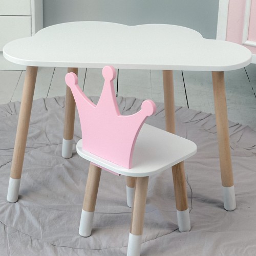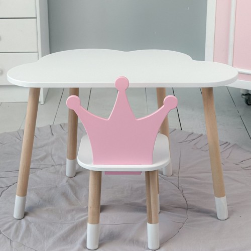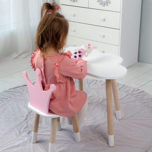 Дитячий стіл білий хмарка і стільчик корона дитячий рожевий. Дитячий білосніжний столик