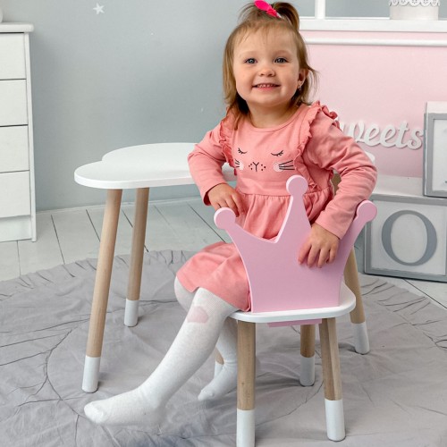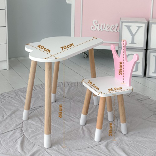 Стіл біле хмаринка 46х70х40 і стільчик корона рожевий 26.5х26х25, стіл та стілець в дитячу