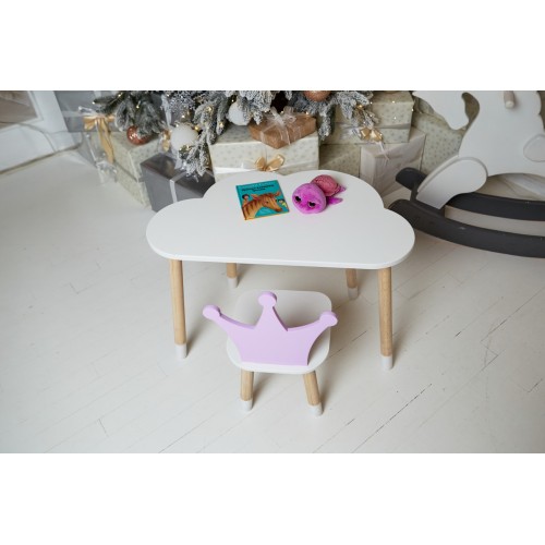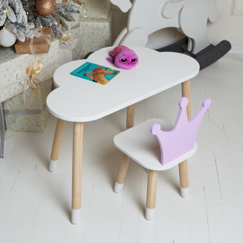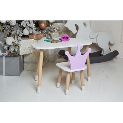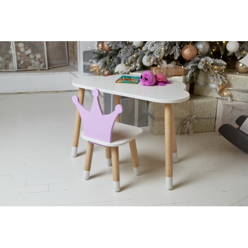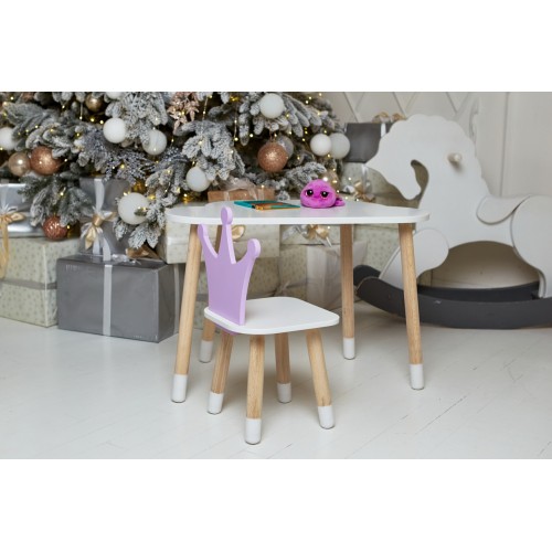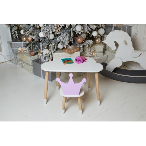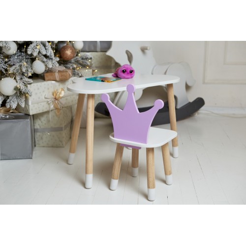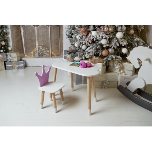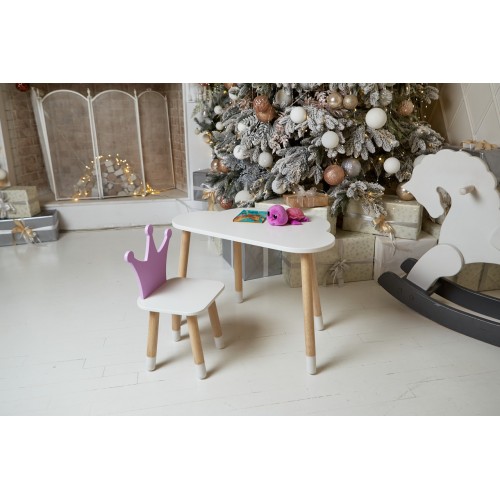 Білий столик хмарка та стільчик корона дитячий фіолетовий. Білосніжний столик дитячий.