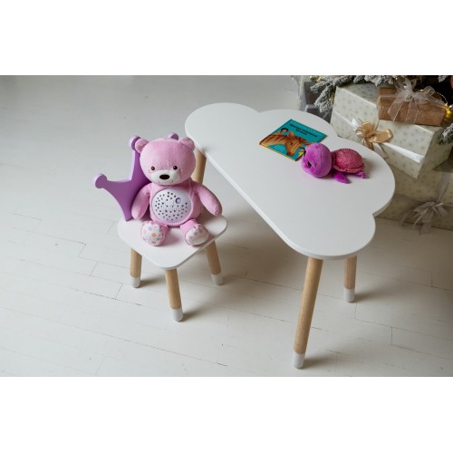 Білий столик хмарка 46х70х40 та стільчик корона фіолетовий 26.5х26х25, набір меблів для дитини стіл та стілець