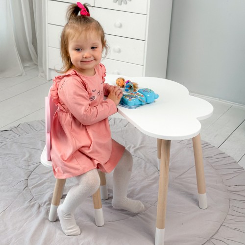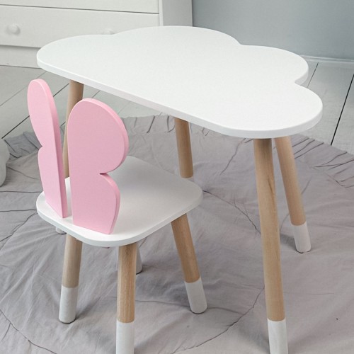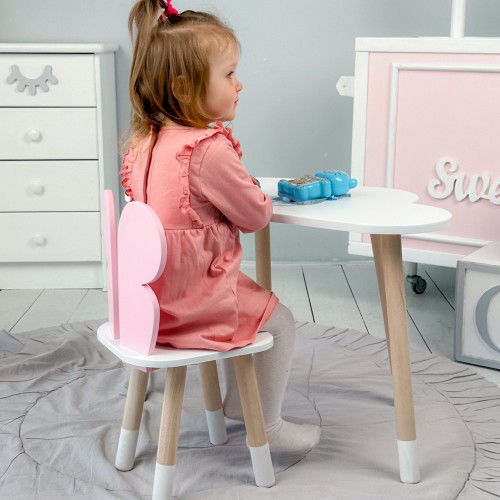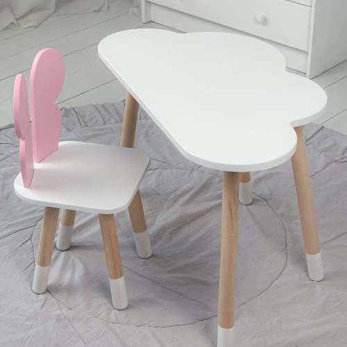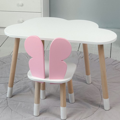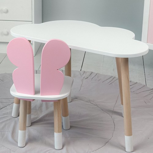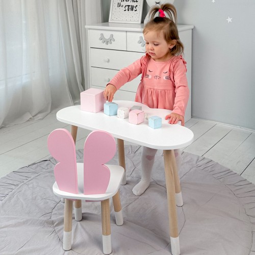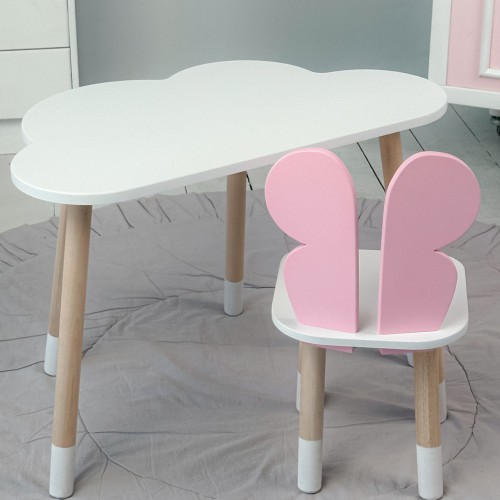 Дитячий білий столик хмарка і стілець метелик  рожевий. Білий столик дитячий