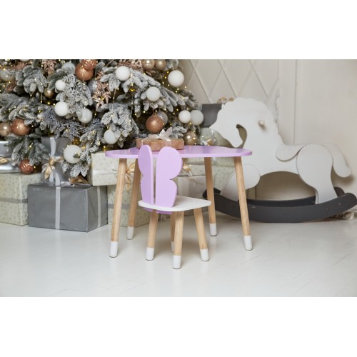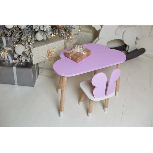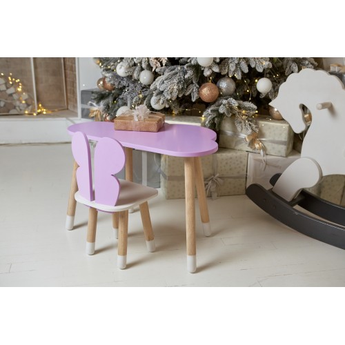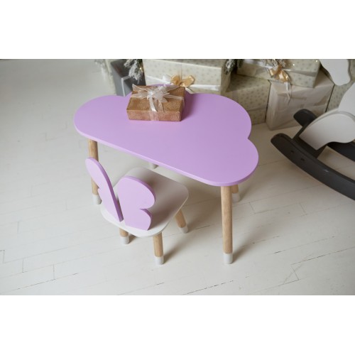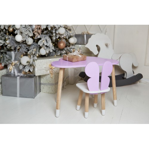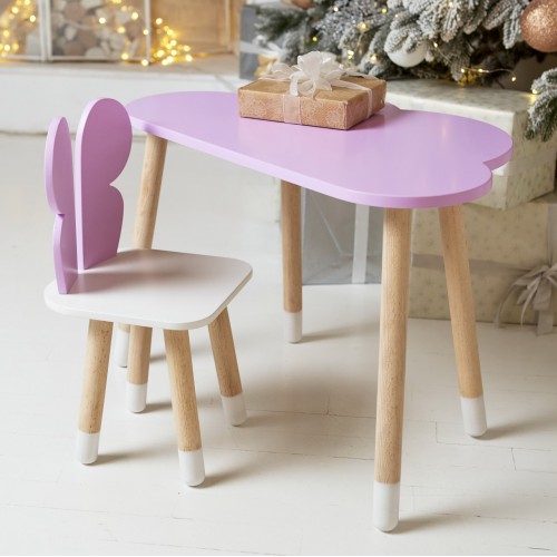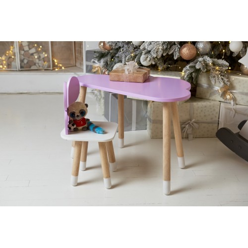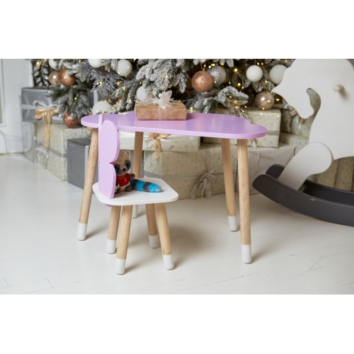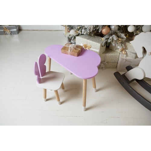 Стіл хмарка 46х70х40 та стільчик метелик 26.5х26х25, дитячий столик та стілець для малювання/занять, фіолетовий з білим